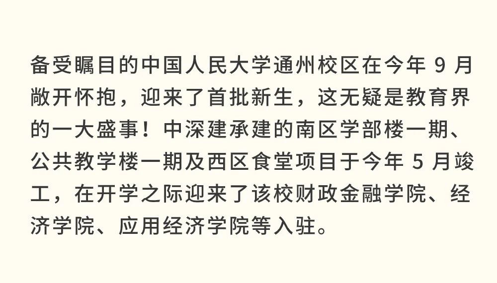 教育建筑集錦 | 中深建承建中國(guó)人民大學(xué)通州校區(qū)項(xiàng)目開(kāi)學(xué)啦!